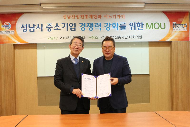 성남산업진흥재단(대표이사 장병화)과 이노디자인(회장 김영세)은 5일 성남시 중소․벤처기업과 스타트업 육성을 위해 MOU를 체결하고 공동 협력사업을 추진해나가기로 했다.