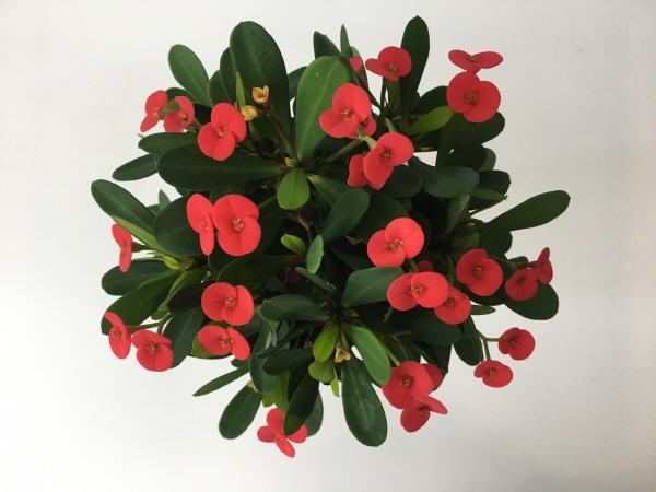 경기도농업기술원은 1년 내내 꽃을 피울 수 있는 다육식물인 ‘꽃기린’ 신품종 ‘레드팡’을 개발했다고 25일 밝혔다.