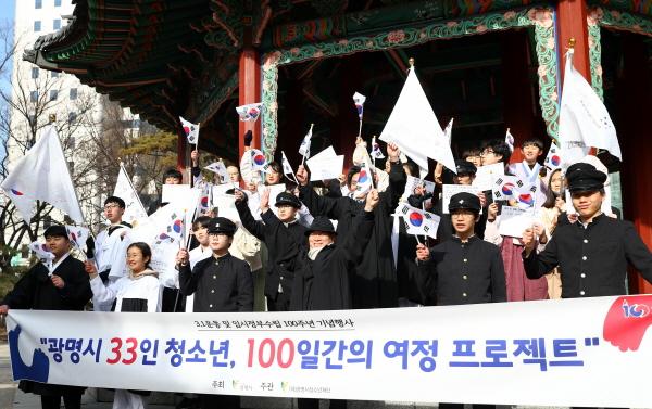 시는 광명시의 미래를 이끌어 갈 청소년들의 올바른 역사관과 가치관 정립에 도움을 주고자 ‘33인 청소년, 100일간의 여정 프로젝트’를 지난해 12월부터 추진하고 있다.
