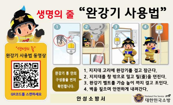 안성소방서는 고층건물에서 불이 났을 때 유용하게 쓰일 수 있는 피난기구 완강기에 대한 홍보에 나섰다.