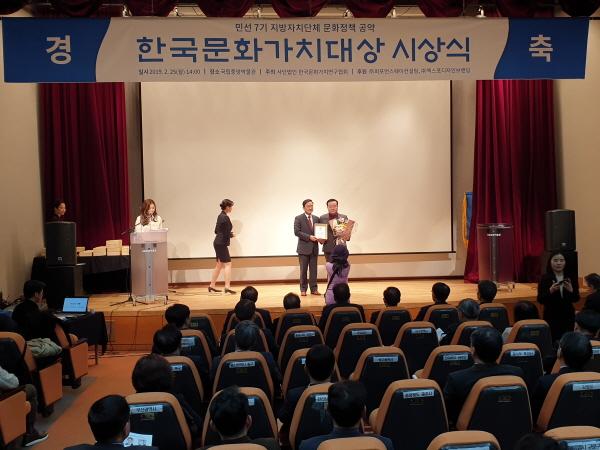 이 상은 문체부 소속의 민간단체인 한국문화가치연구협회가 전국 17개 광역지방자치단체와 226개 기초 지방자치단체의 민선7기 공약사업 중 지역의 특색있는 문화정책을 발굴하고 그 이행여부를 평가해 시상한다.