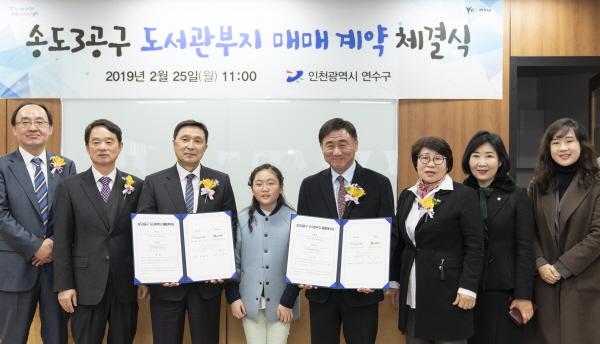 연수구가 송도3공구 연수구 대표도서관 건립을 위해 25일 토지소유자인 송도국제도시개발유한회사와 토지매매계약을 체결했다.