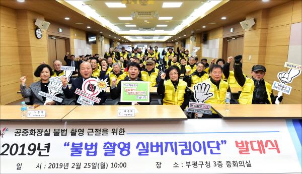이번 발대식에는 차준택 부평구청장을 비롯해 부평경찰서 및 삼산경찰서, 부평구노인인력개발센터 관계자와 함께 ‘2019년 불법 촬영 실버지킴이단’으로 선정된 어르신 50명 등 70여 명이 참여했다.