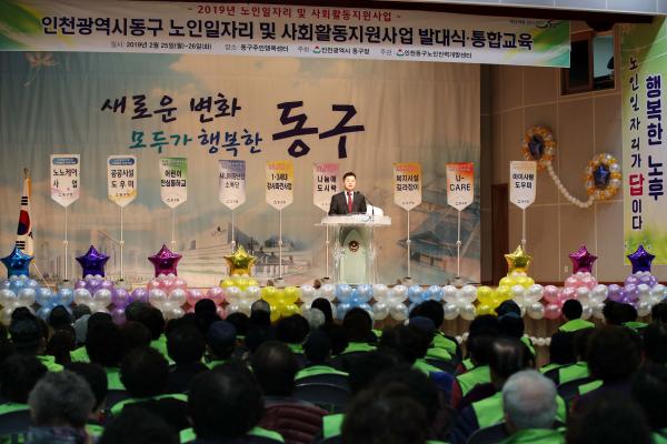 인천 동구는 25일, 주민행복센터 3층 강당에서 노인일자리 참여자 2,050명이 참석한 가운데 2019년 노인일자리 및 사회활동지원사업 발대식을 개최했다.
