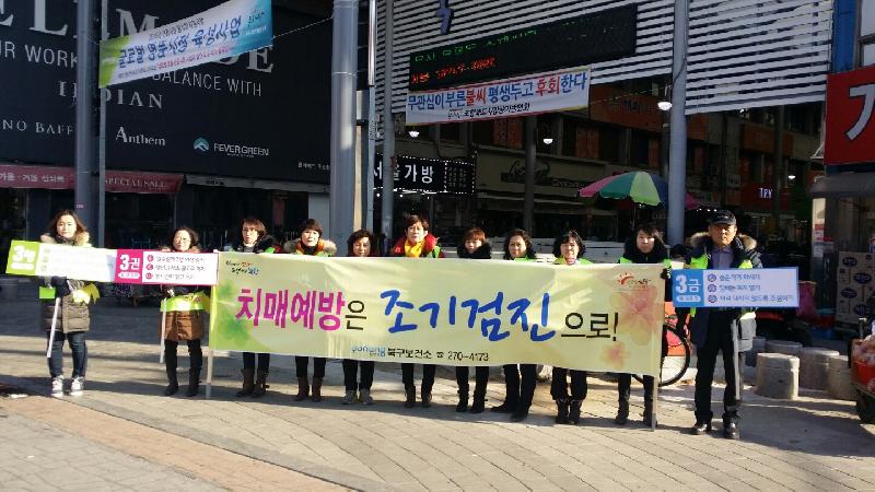 포항시 북구보건소는 4일 죽도시장과 북부시장에서 치매조기검진 및 치매예방 캠페인을 전개했다. 치매질환의 이해와 인식개선을 위해 마련된 이날 캠페인에서는 설을 맞아 부모님의 기억력을 살펴보고, 보건소에서 실시하는 치매조기검진으로 부모님의 뇌건강을 체크할 것을 당부했다. 북구보건소 관계자는 “지난해 기준 우리나라 치매환자는 63만명으로, 65세 이상 어르신 10명중 1명이 치매를 앓고 있지만 치매는 조기검진으로 충분히 예방할 수 있다”며 “치매예방과 조기검진을 위해 보건소 치매상담센터를 적극 이용해주길 바란다”고 말했다. 한편 북구보건소는 치매환자와 가족이 겪는 고통을 줄이고, 치매 예방을 위해 적극적인 치매예방관리사업을 추진하고 있다. 보건소 내 치매상담센터에서는 치매선별검사와 정밀검진 의뢰, 치매치료비지원, 치매환자 지지프로그램을 운영하고 있다.