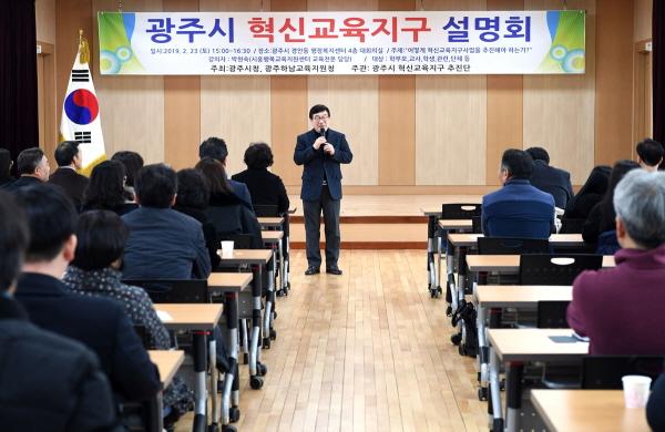 광주시와 광주하남교육지원청은 지난 23일 경안동 행정복지센터 4층 대회의실에서 ‘2019 혁신교육지구 사업 설명회’를 개최했다.