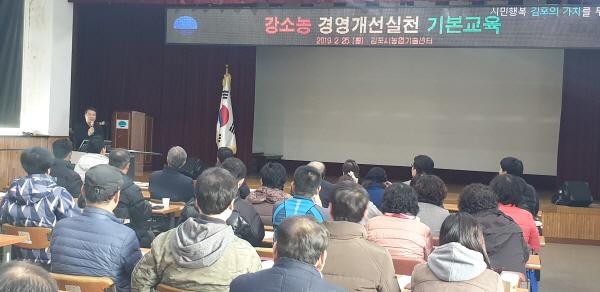 김포시농업기술센터는 지난 25일, 자율·자립 경영실천을 통한 ‘작지만 강한 농업경영체 강소농’ 육성을 위한 ‘2019년 강소농 경영개선실천 기본교육’을 실시했다.