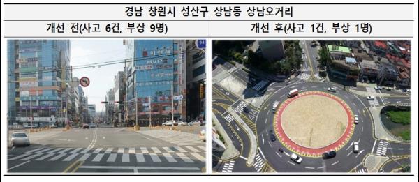 이는 행정안전부와 한국교통연구원이 회전교차로 설치사업이 완료된 129개소에 대해 설치 전·후 1년간 교통사고 현황을 분석한 결과이다.