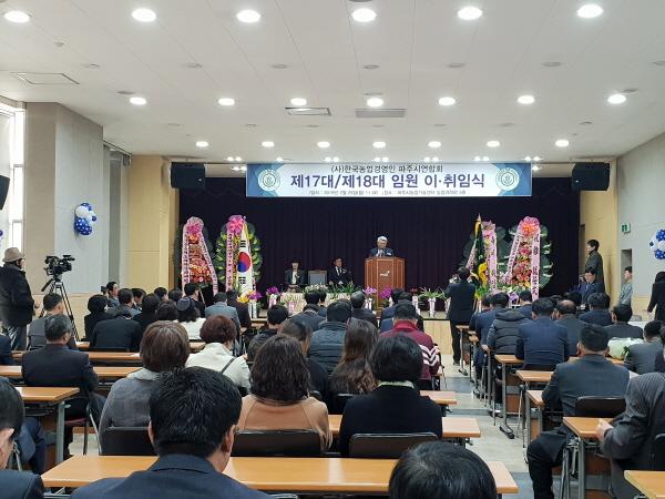 한국농업경영인 파주시연합회장 이·취임식이 지난 25일 농업기술센터 농업과학관 교육장에서 최종환 파주시장을 비롯해 윤후덕 국회의원, 손배찬 파주시의회 의장, 유관기관단체장, 회원 등 150여명이 참석한 가운데 개최됐다.