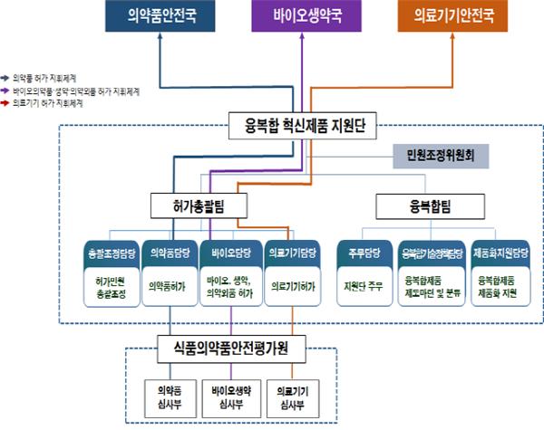 지원단은 융복합팀 허가총괄팀으로 구성하고 단장 1인을 포함해 총 62명으로 운영되며, 융복합 혁신제품의 개발을 지원하고 허가와 원활하게 연계될 수 있도록 할 계획이다.