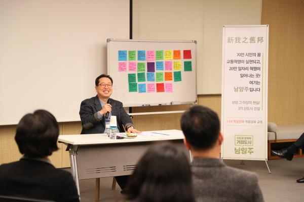 교육은 사내강사 김경환 총무과장의 “걱정말아요 PPT” 로 유쾌하게 시작됐다. 이어 조광한 남양주시장이 특강강사로 직접 참여해 시의 리더로서 3기 신도시 유치를 기점으로 2030년 수도권 동북부 거점도시, 2050년 녹색자족도시로 성장하기 위한 남양주시만의 비전과 전략을 직원들과 공유했다.