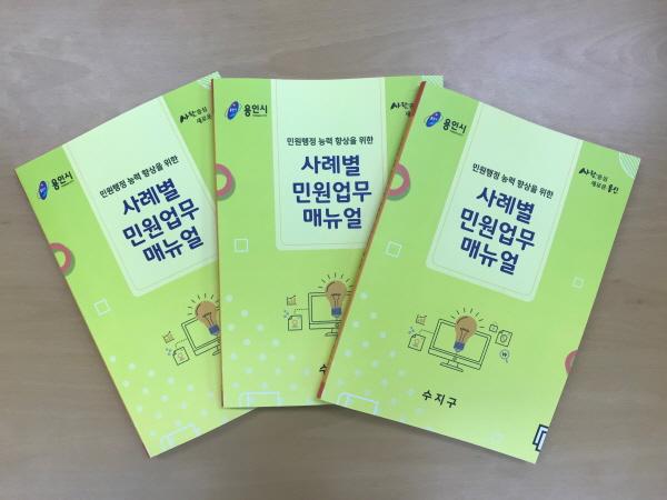 용인시 수지구는 민원업무 처리 절차와 주요 민원에 대한 응대 방법 등을 담은 ‘사례별 민원업무 매뉴얼’을 제작해 구청과 주민센터에 배포했다고 26일 밝혔다.