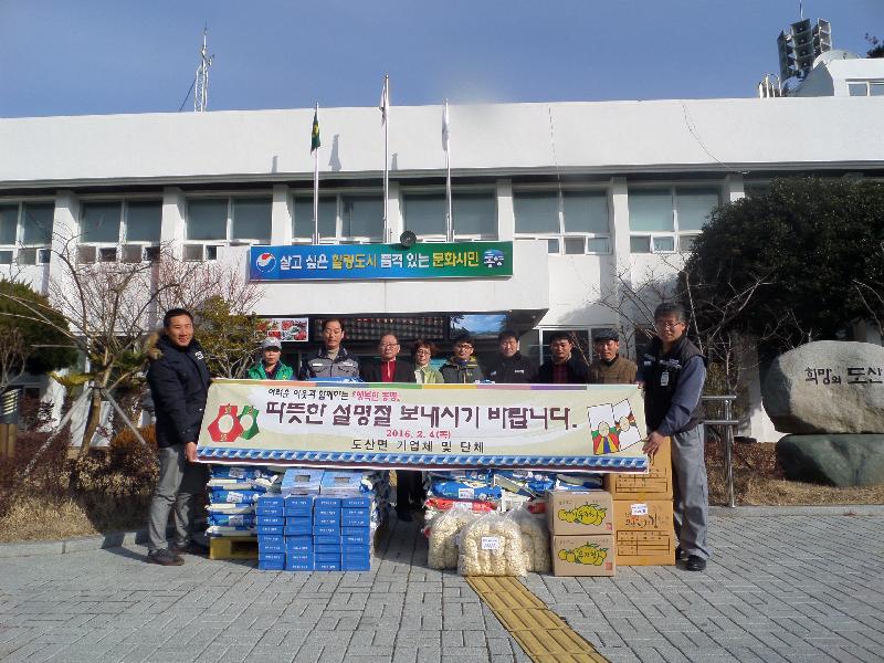 박춘근 도산면장은 “매년 명절 때 마다 이렇게 어려운 이웃을 위해 성품을 기탁해 주시는 ㈜기림산업의 박병규 대표와 우리지역에 소재한 ㈜금명의 박종헌 대표, ㈜청암산업의 정연면 대표 등 설선물 기탁하여 주신 모든 분께 고마움을 표하고 설을 앞두고 관내 어려운 이웃에 나눠줘 더불어 사는 따뜻한 설명절이 되도록 하겠다 ”고 감사의 인사를 전했다.