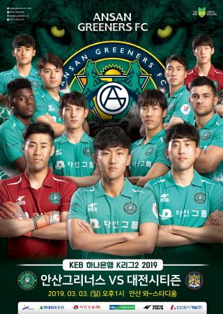 안산 그리너스 FC가 오는 3월 3일 오후 1시, 안산 와~스타디움에서 ‘하나원큐 K리그2 2019 1라운드’ 대전시티즌과 개막전 경기를 치룬다.