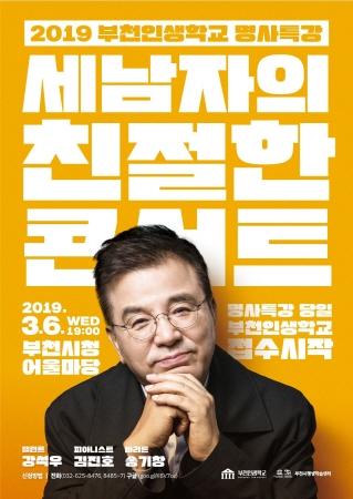 부천시는 오는 3월 6일 저녁 7시 시청 어울마당에서 배우 강석우가 진행하는 부천인생학교 명사특강 ‘세 남자의 친절한 콘서트’를 개최한다.