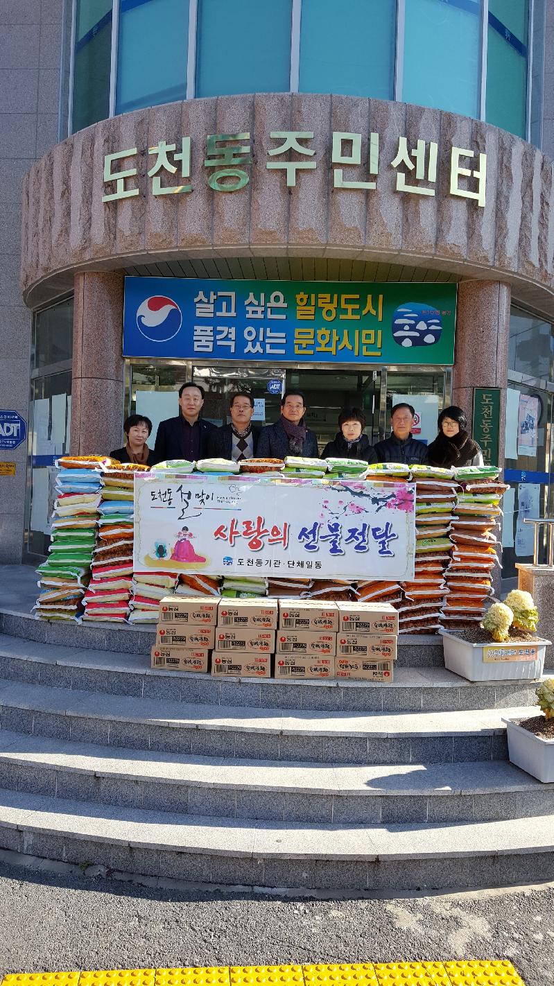 도천동(동장 성명만)에서는 민족 최대의 명절인 설을 맞아 관내 자생단체 및 독지가들로부터 기탁 받은 쌀, 라면, 등의 성품을 국민기초생활보장수급자, 한부모가족, 가정위탁아동, 차상위가구, 저소득 독거노인, 저소득 다문화가정 등 생활이 어려운 저소득층 830세대와 도천지역아동센터, 무료급식소, 통영지역자활센터, 관내 경로당 등 16개소의 복지시설을 방문하여 전달하고 이들을 따뜻하게 격려했다.