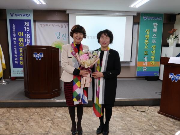 이날에는 동해YWCA 이사, 목회자와 각급 기관·단체장 그리고 회원 100여명이 참석해 신임 회장의 취임을 축하했다.