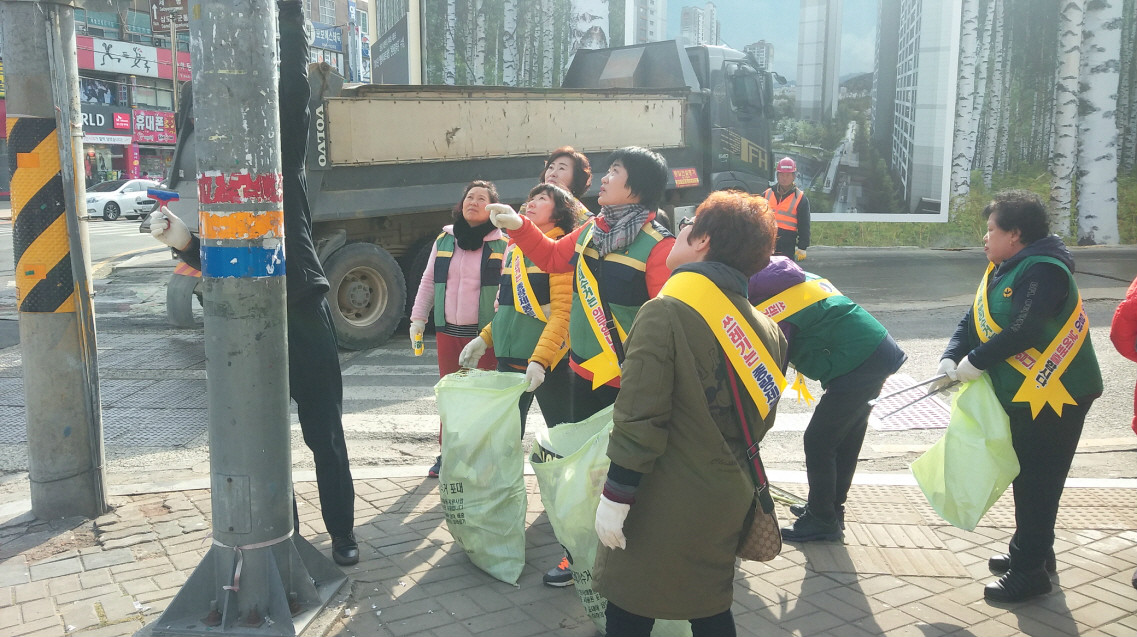 이번에 실시한 환경정화 활동은 간선도로변 쓰레기, 버스승강장 및 전신주 등에 부착된 불법 유동광고물(마대 40포)을 수거하여 아름답고 깨끗한 도시 미관을 조성하는 데 다 같이 힘을 모아 그 의미를 더하였다.