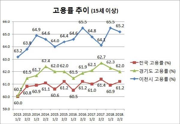 이천시 2018 하반기 고용률 65.2% 5년간 경기도內 1위