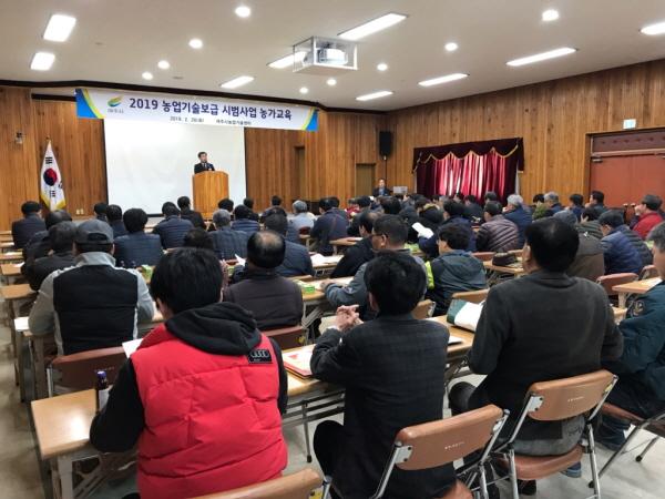 본격적인 사업 추진에 앞서 진행된 시범사업 농가 교육에서는 농업기술보급 시범사업의 추진내용과 보조금 교부 신청서 작성 요령 등에 대한 교육이 진행됐다.