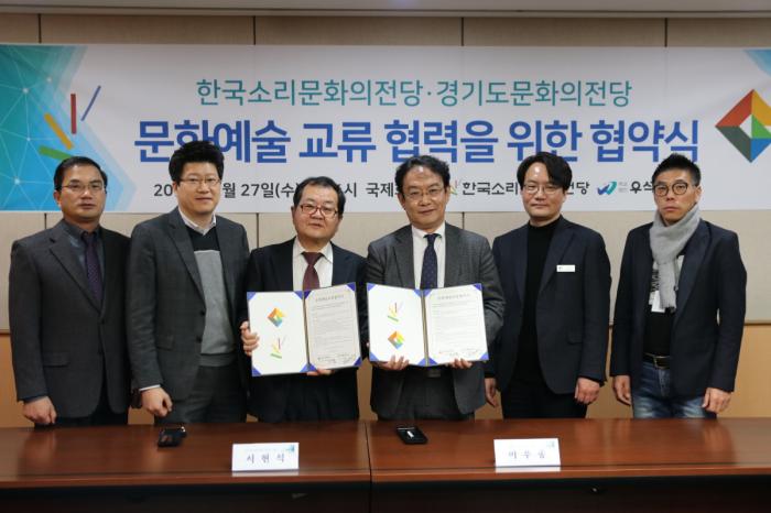 경기도문화의전당(사장 이우종)과 한국소리문화의전당(대표 서현석)이 27일 오후 4시 한국소리문화의전당 국제회의장에서 문화예술교류 협력을 위한 협약을 체결했다.