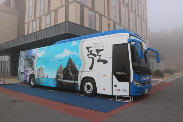 독도재단에서 제작·운영하는 독도홍보버스는 독도의 모든 것을 체험할 수 있는 이동 홍보관이다. 수원광교박물관과 독도박물관이 공동으로 개최하는 ‘한국인의 얼, 독도에 심다’ 전시회가 진행되는 오는 7월 14일까지 한 달에 2~3차례 수원광교박물관에 배치할 계획이다. 전시회는 수원광교박물관 사운실에서 열린다.