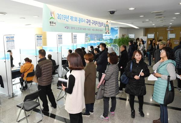 광주시는 지난 27일 시청 10층 로비에서 ‘2019년 제1회 광주시 구인·구직자 만남의 날’ 행사를 개최했다.