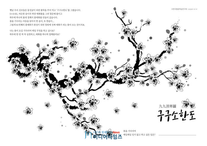 구구소한도는 선조들이 동지(冬至)로부터 9일을 단위로 9번의 추위가 지나면 봄이 온다는 뜻으로 81송이 매화를 하루 한 송이씩 칠해가던 소망과 기다림의 미학으로, 꿈을 상징하는 어린이들이 완성할 구구소한도는 진정한 봄의 선언이다.