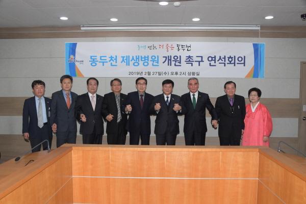 동두천시는 지난 27일 오후 2시 시청 상황실에서 ‘동두천 제생병원 개원 촉구 연석회의’를 가졌다. 동두천시장이 주관한 연석회의에는 시민대표로 한종갑 범시민대책위원장이 참석했고, 제생병원 사업 추진기관인 종단 대순진리회에서는 성주방면, 여주, 중곡, 포천도장 대표 및 실무자 등 30여 명이 참석한 가운데 이루어졌다.
