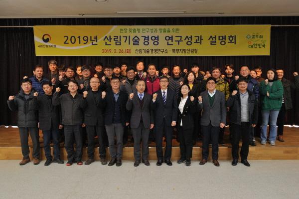2019년 산림기술경영 연구성과 설명회는 국립산림과학원 산림기술경영연구소의 주최로 산림청 산림자원과를 비롯한 5개 지방산림청과 27개 국유림관리소의 산림사업 담당자 80여 명이 참석해 ‘산림사업별 맞춤형 현장 기술 컨설팅’과 ‘문제 해결형 실용연구 강화’를 위해 북부지방산림청과 남부지방산림청에서 이루어졌다.