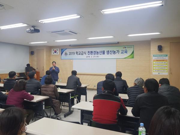 이날 교육은 학교 급식에 친환경 원예농산물을 공급하는 재배농가 40여 명이 참석한 가운데 생산농가의 역할과 자세에 대해 교육했으며, 올해 학교 급식 운영계획을 설명하고 재배농가와 소통의 시간을 가졌다.