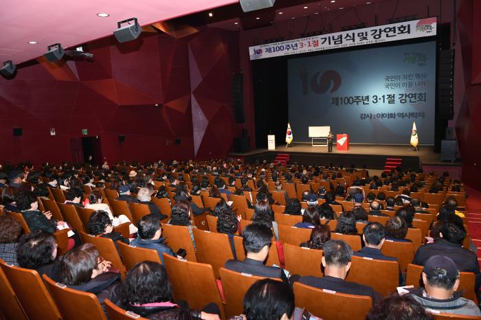 2부에서는 저명한 역사학자이신 이이화 강사님을 초빙하여‘3・1혁명은 민족사의 위대한 전통’이란 주제의 특별강연회를 통해“임시정부의 태동과 민족사적 의미 속에서 100주년을 맞은 3.1절은 민족화합과 단합에 그 기본방향을 제시해 줄 것이다”고 말해 참석자들로부터 호응을 얻었다.