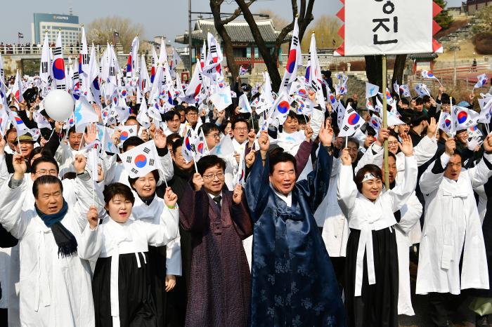 수원시가 3월 1일 화성행궁 광장과 시내 일원에서 ‘3.1운동 100주년 기념 시민문화제’를 열고, 100년 전 수원의 3.1 만세 운동을 재현했다.