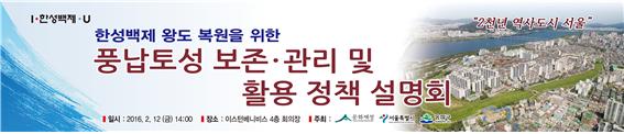 한편, 서울시와 문화재청, 송파구청 3개 기관은 이번 정책 설명회에 앞서 작년 10월5일 한국고대사 관련 7개 주요 학회가 참여하는 「고대 동아시아의 왕성과 풍납토성 학술세미나」를 공동 후원한 바 있다.