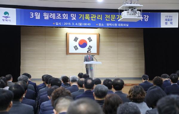 평택시는 4일 시청 대회의실에서 전직원을 대상으로 기록관리 전문 강사를 초청해 ‘한국의 기록문화와 평택 역사기록 사례들’을 주제로 2019년 기록관리 인식 향상 교육을 실시했다.