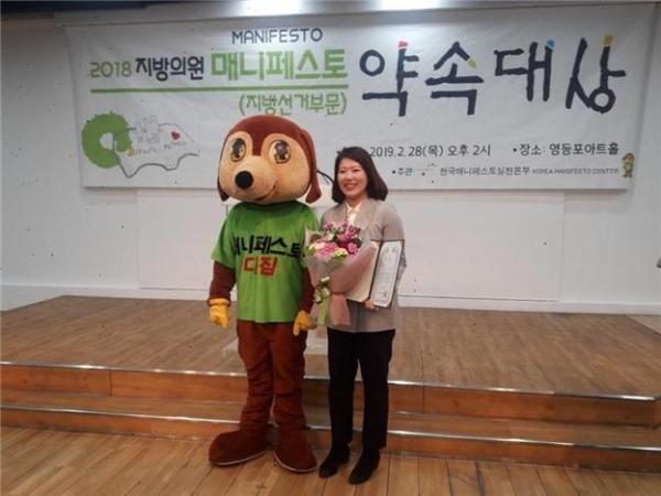 이경선 서울시의원은 지난 2월 28일 한국매니페스토실천본부가 실시한 ‘2018 지방의원 매니페스토 약속대상’에서 광역의원 부분에서 최우수상을 수상했다.