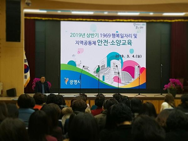 광명시는 지난 4일 시청 대회의실에서 상반기 지역공동체일자리사업과 1969 행복일자리사업 참여자 88명을 대상으로 안전 및 소양교육을 실시했다.