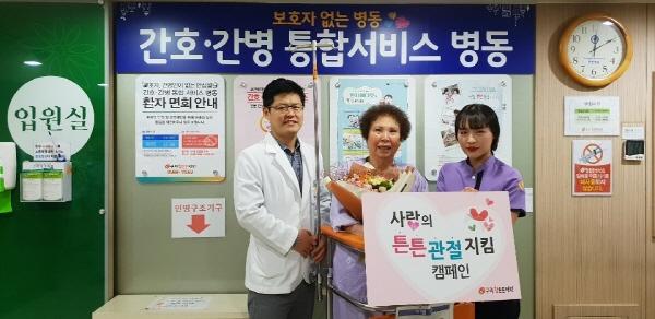또한 이 어르신은 독거노인으로 가족이 없어 공동 간병인 서비스도 함께 무료로 제공되어 어르신의 근심을 덜어 드리는 등 회복도 빠르게 진행되고 있다.