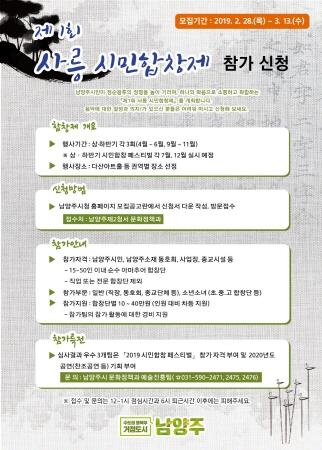 남양주시는 오는 13일까지 ‘제1회 사릉 시민합창제’ 참가단체를 모집한다.
