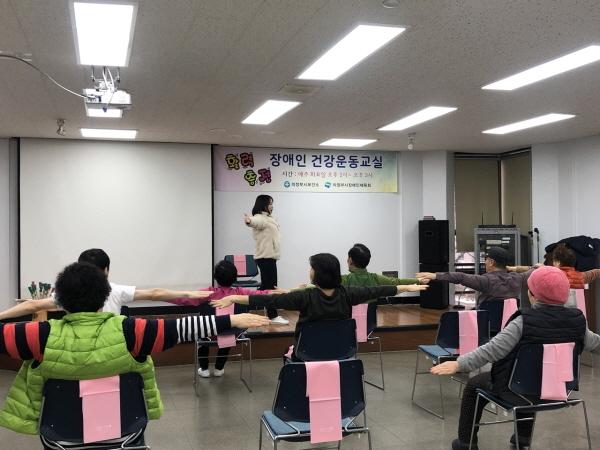 관할 지역 내 장애등급을 받은 장애인을 대상으로 실시하는 건강운동교실은 대상자가 장애인인 것을 고려, 앉아서 하는 세라밴드 및 놀이체육을 통한 근력운동과 도구를 이용한 소근육 발달 운동프로그램이다. 주 1회 매주 화요일 오후 2시부터 3시까지 보건소 2층 보건교육실에서 진행한다.