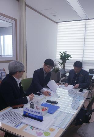 경기도의회 용인상담소에서 6일 오후 지석환 도의원은 용인시 교통정책과장, 의회협력팀장과 함께 2019년 주차환경개선사업에 대해 논의하는 자리를 가졌다.