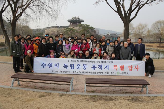 수원시민 70여 명이 참가한 가운데 진행된 이번 탐방은 수원시와 화성시의 ‘3.1운동 100주년 기념사업’ 교류의 하나로 수원문화원과 화성문화원이 함께 주관했다.