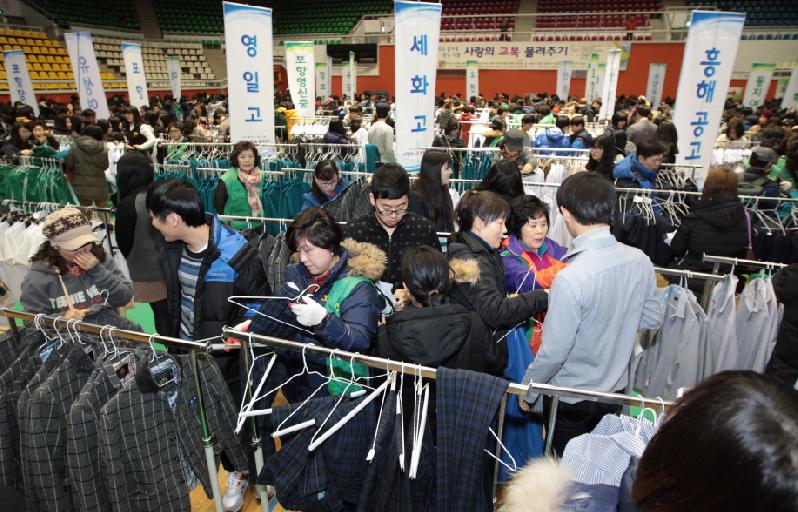 포항시가 졸업·입학 시즌을 맞아 교복 재활용을 통해 이웃 사랑을 실천하고, 학부모들의 가계 부담을 덜어주기 위해 오는 23일 포항실내체육관에서 ‘2016년 사랑과 나눔의 교복물려주기 행사’를 개최한다. 이번 행사에서는 관내 중·고교가 참여해 기증한 교복을 포항시새마을부녀회 회원들이 세탁과 수선을 거쳐 저렴한 가격(동복 1점당 5,000원, 하복 1점당 3,000원)으로 판매한다. 판매 수익금은 참여학교 학생 장학금 및 교복지원 사업으로 전달될 예정이다. 교복기증을 원하는 학생은 각급 학교의 방학식 및 졸업식 날 별도의 기부처를 통해 기증이 가능하다. 권혁원 새마을민원과장은 “이번 행사가 학부모들의 가계 부담을 줄이고 자원순환을 통한 녹색새마을운동 실천 계기가 될 것”이라며 “사랑과 나눔의 교복물려주기 운동에 시민 여러분의 많은 관심과 동참을 당부한다”고 말했다. 한편 교복나누기 운동은 지난 2009년부터 실시되고 있으며, 매년 10,000여점의 교복을 기증받아 판매하고 있다.