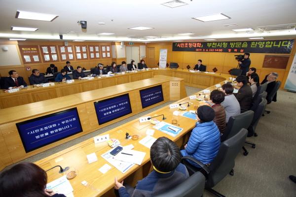 시청 창의실에서 진행된 대화의 자리에서 시민들은 심곡본동 극동아파트 재건축에 대한 의견을 비롯해 주거환경 개선, 보행로 확보, 전통시장 이용객 화장실 설치, 지역별 균형 발전을 고려한 도시재생 전략 수립 등의 의견을 이야기했다.