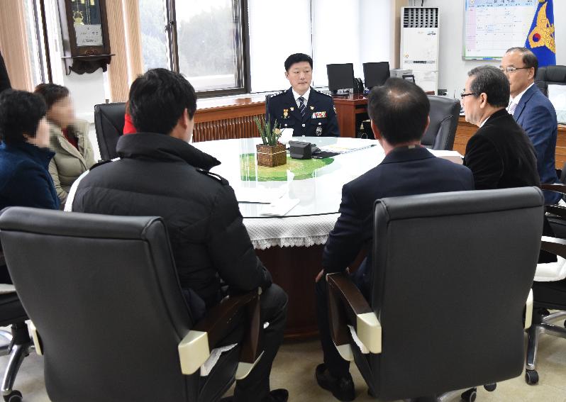 2016. 2. 16(화). 11:50 경주경찰서 서장실에서 (사)팔각회(회장 오영호)와 함께 장기투병 탈북민을 돕기 위한 후원금 전달식을 가졌다. 이번 행사는 정흥남 경주경찰서장이 주선하여 몸이 불편한 탈북민 이○○ 등 3명을 추천하여 (사)팔각회에서 성금 각 20만원(도합60만원)을 전달하였다. 경주경찰서장은 탈북민들이 우리사회에 안정적으로 정착할 수 있도록 관심을 갖고 노력을 기울이는 것이 실질적인 통일준비의 일환이 될 수 있다며 더불어 다양한 지원책으로 이탈주민들이 사회로부터 소외받지 않도록 적극 지원하기로 약속하였다.