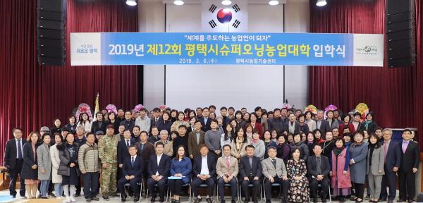 평택시는 지난 6일 농업기술센터 대강당에서 입학생과 농업관련기관단체장 등 150여명이 참석한 가운데 2019학년도 제12회 슈퍼오닝농업대학 입학식을 개최했다.