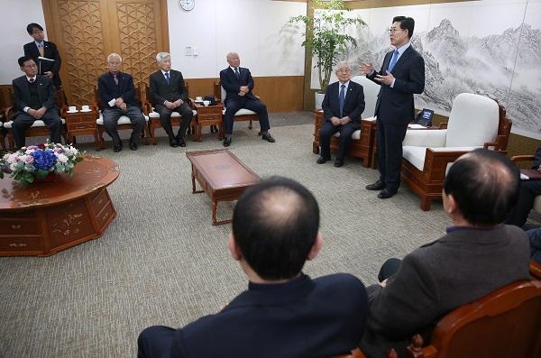양승조 충남도지사는 7일 도청 접견실에서 대한노인회 충남도연합회 임원진과 간담회를 가졌다.