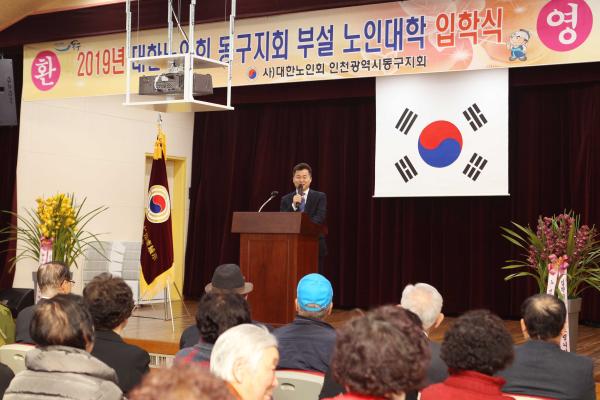 인천 동구는 지난 6일, 동구노인복지관에서 허인환 동구청장을 비롯한 내빈과 노인 대학생 100여명이 참석한 가운데 2019년도 상반기 대한노인회 동구지회 부설 노인대학 개강식을 개최했다고 밝혔다.
