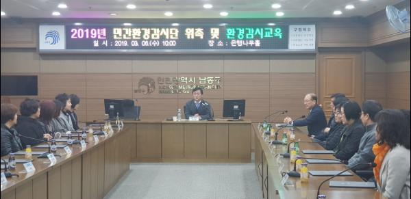 인천 남동구는 6일 구청에서 ‘2019년도 민간환경감시단 운영’과 관련 위촉장을 수여하고 실무교육을 실시했다.