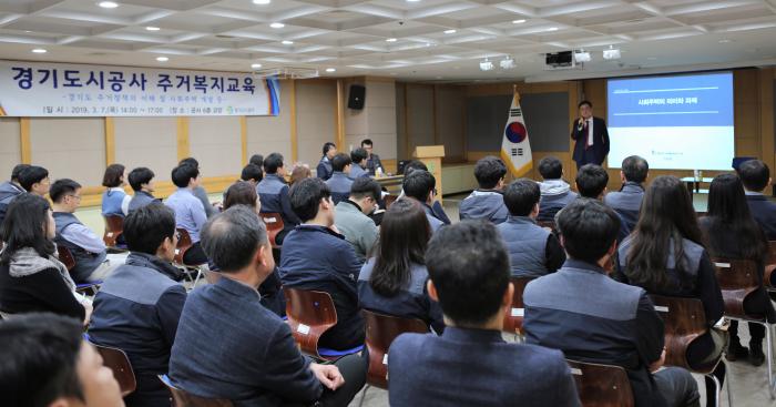 경기도시공사는 7일 본사에서 전체 임직원을 대상으로 최근 이슈화된 사회주택과 관련해 주거복지 직무교육을 실시했다고 밝혔다.
